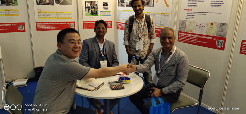 020年1月23日至28日由印度機(jī)床制造商協(xié)會(huì)(IMTMA)主辦的印度國(guó)際機(jī)床及成型設(shè)備展覽會(huì)在班加羅爾國(guó)際展覽中心(BIEC)圓滿落幕。山東興田陽(yáng)光智能裝備股份有限公司如邀參加展會(huì),展示了公司的專利產(chǎn)品產(chǎn)品主要用于鋼結(jié)構(gòu)、鐵塔加工行業(yè)等專機(jī)設(shè)備—YJCX數(shù)控槽鋼角鋼帶鋼沖孔剪切生產(chǎn)線。鞏固已有合作關(guān)系,還發(fā)掘了大批潛在的客戶,為開拓新的市場(chǎng)奠定了基礎(chǔ)。