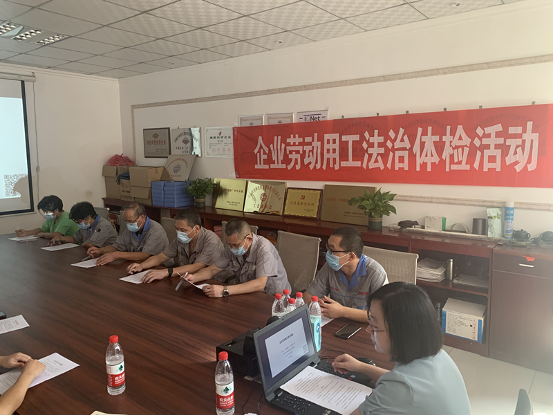 為促進企業(yè)構建和諧勞動關系,維護企業(yè)職工合法權益,9月29日下午,在玉清湖街道總工會工作人員的陪同下,槐蔭區(qū)總工會企業(yè)用工體檢團走進山東興田陽光智能裝備股份有限公司開展勞動用工“法制體檢”活動。