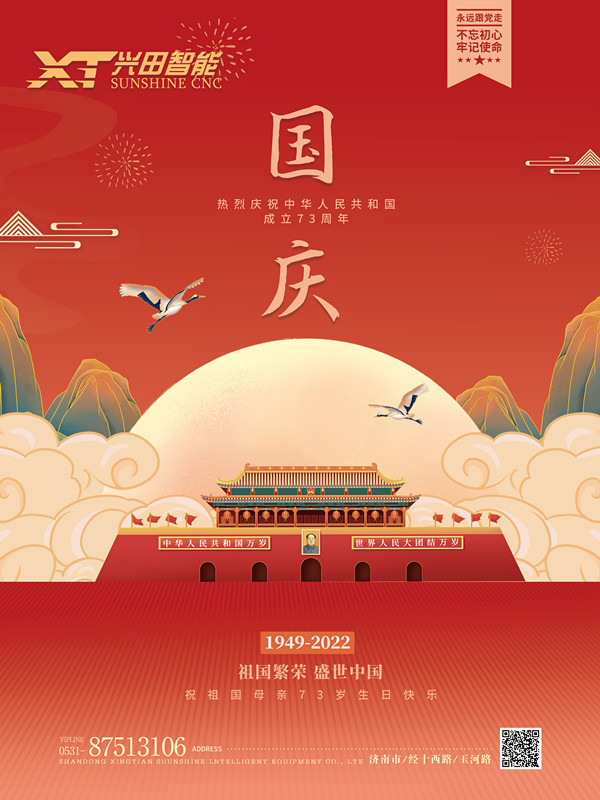 值此國(guó)慶佳節(jié)來(lái)臨之際,山東興田陽(yáng)光智能裝備股份有限公司董事長(zhǎng)徐福厚、總經(jīng)理徐鵬攜全體員工向廣大合作伙伴、公司全體員工及家人表示衷心的感謝,并致以節(jié)日的問(wèn)候!祝大家國(guó)慶節(jié)快樂(lè),闔家歡樂(lè)!感謝您一路對(duì)山東興田陽(yáng)光智能的支持與厚愛(ài);展望未來(lái),我們將繼續(xù)與您攜手并進(jìn)、合作共贏、再創(chuàng)輝煌!