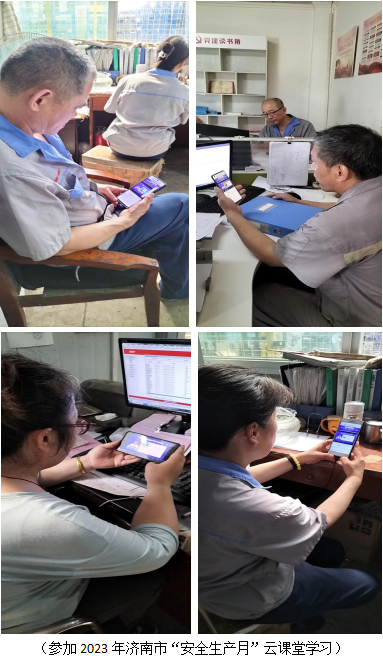 各部門(mén)根據(jù)安全生產(chǎn)月活動(dòng)部署安排,分別組織本部門(mén)全體員工開(kāi)展以“防機(jī)械傷害和物體打擊”、“消防安全知識(shí)”、“事故警示視頻教育”、“傳達(dá)學(xué)習(xí)習(xí)近平總書(shū)記關(guān)于寧夏燃?xì)獗ㄊ鹿手匾甘?rdquo;等為主題的專題教育培訓(xùn),認(rèn)真組織員工參加2023年濟(jì)南市“安全生產(chǎn)月”云課堂學(xué)習(xí)活動(dòng),規(guī)范開(kāi)展“晨會(huì)”,辦公室通過(guò)公司內(nèi)部微信交流群、張貼宣傳紙、懸掛標(biāo)語(yǔ)橫幅等方式廣泛宣傳,將安全生產(chǎn)普及深入到每一個(gè)人的心中。