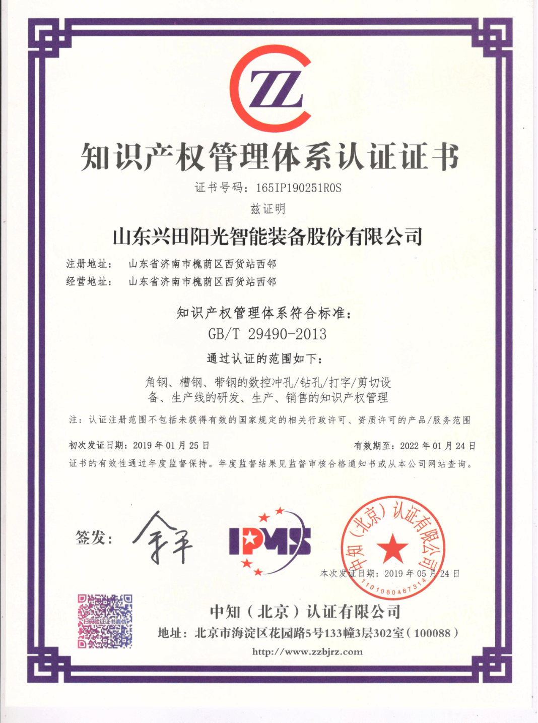 獲得了國(guó)際認(rèn)證聯(lián)盟認(rèn)證證書(shū)IQ Net,并取得知識(shí)產(chǎn)權(quán)管理體系貫標(biāo)認(rèn)證