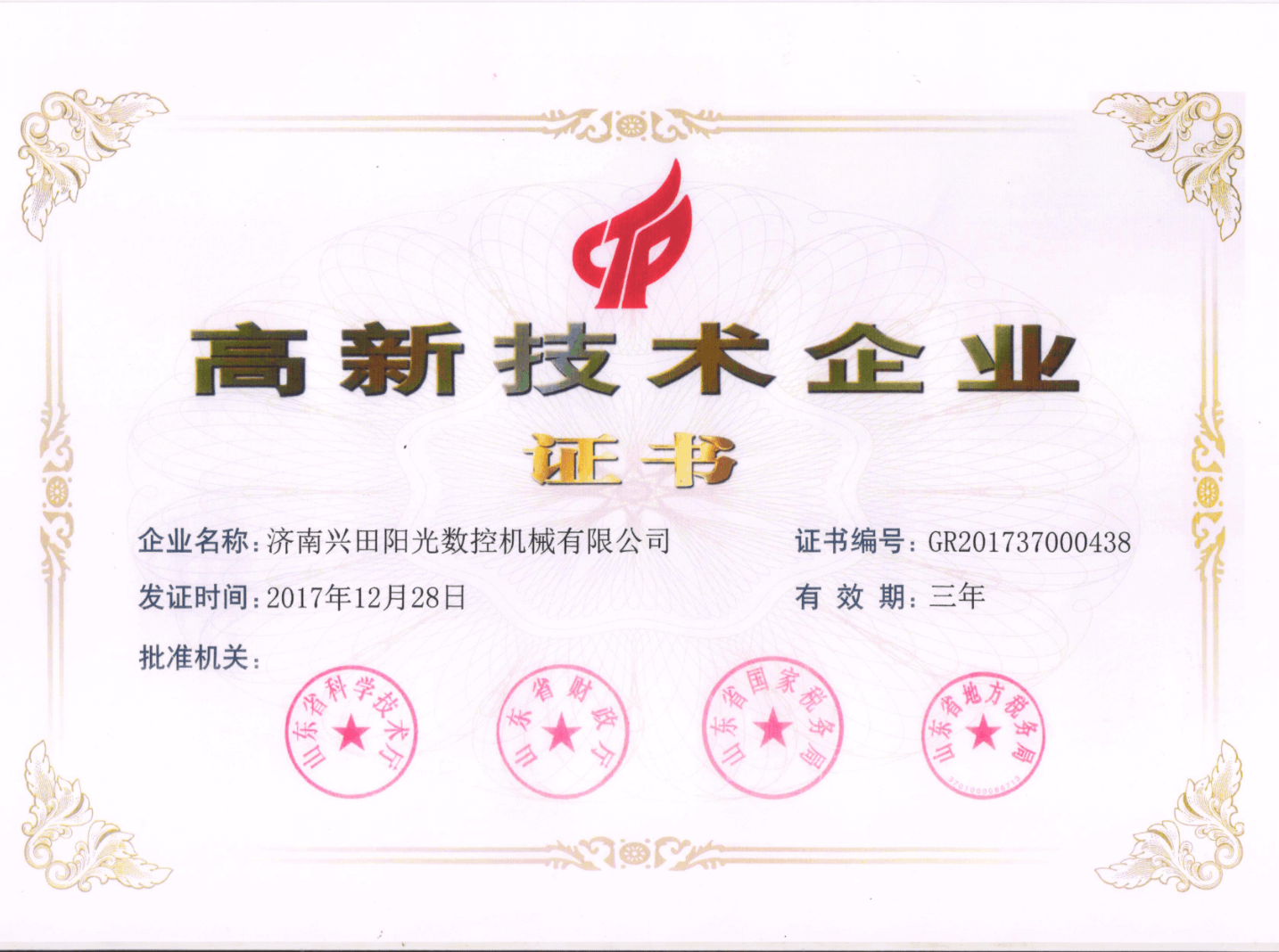 高新技術(shù)企業(yè)證書(shū)2017年度新認(rèn)定