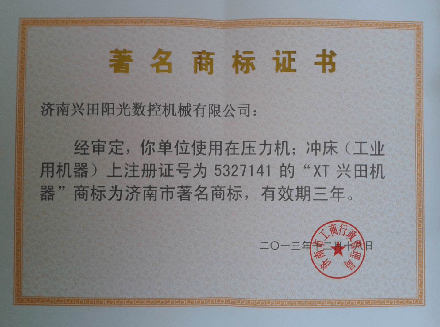 濟(jì)南市著名商標(biāo)證書(shū)