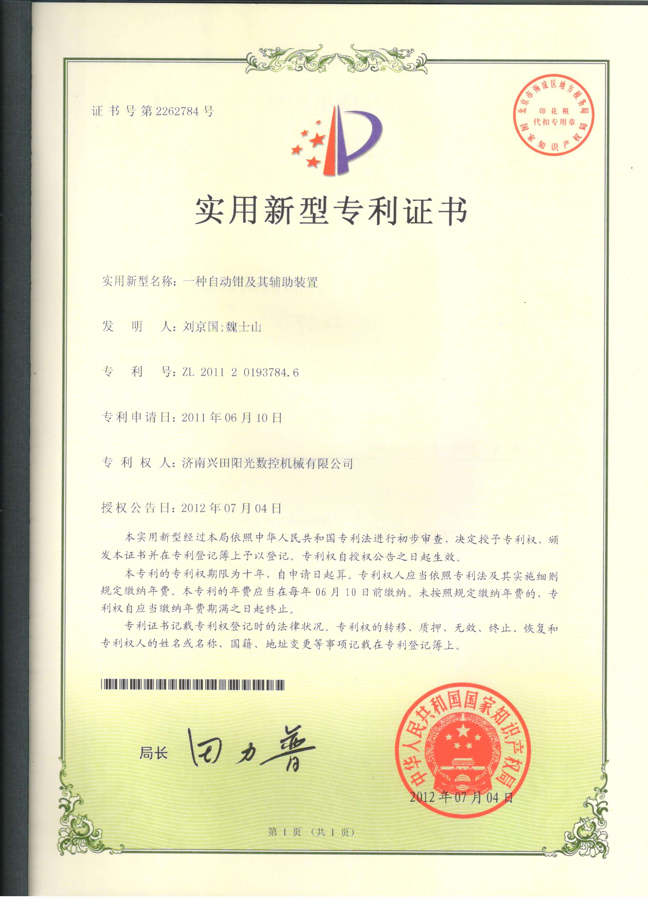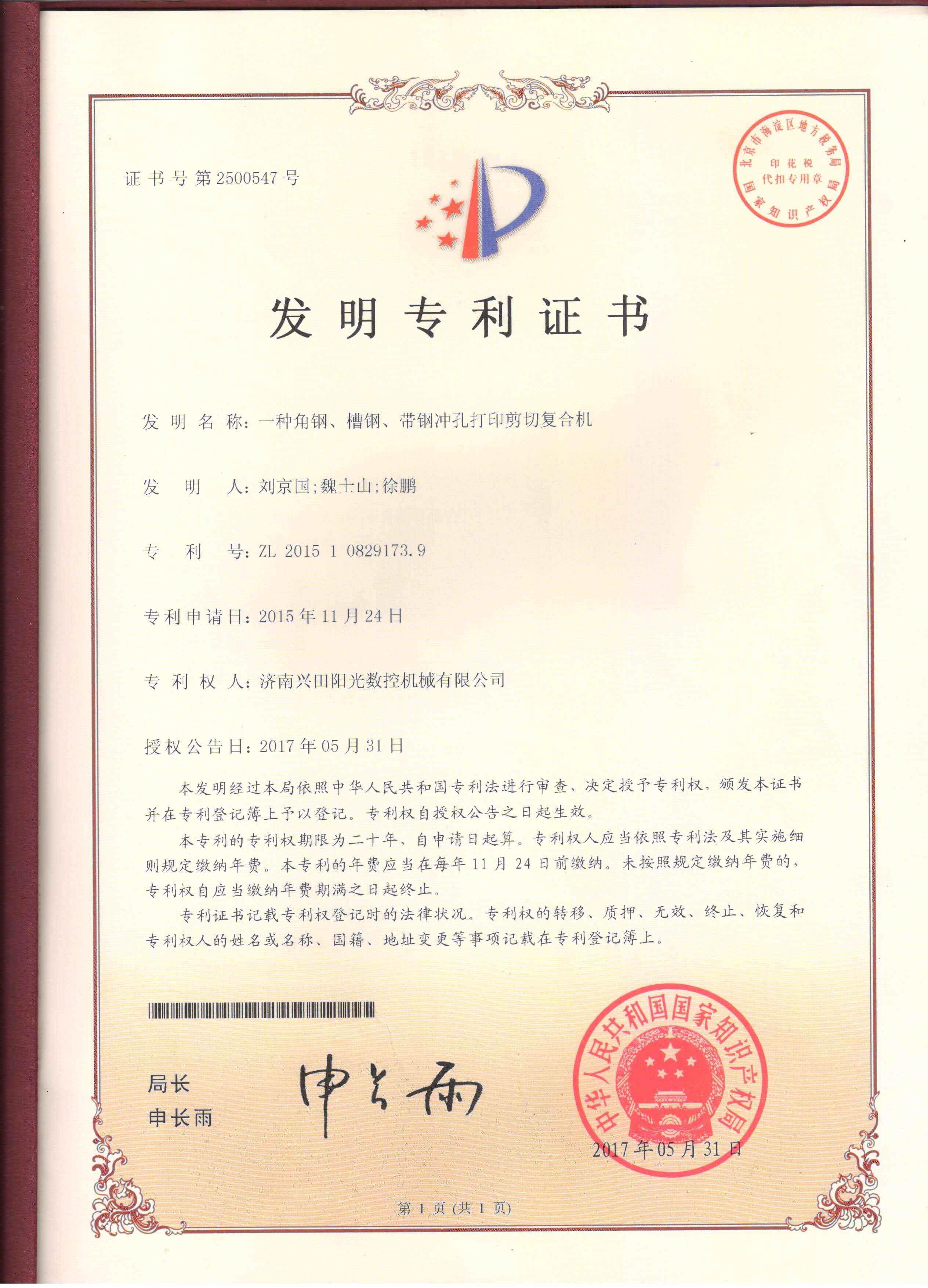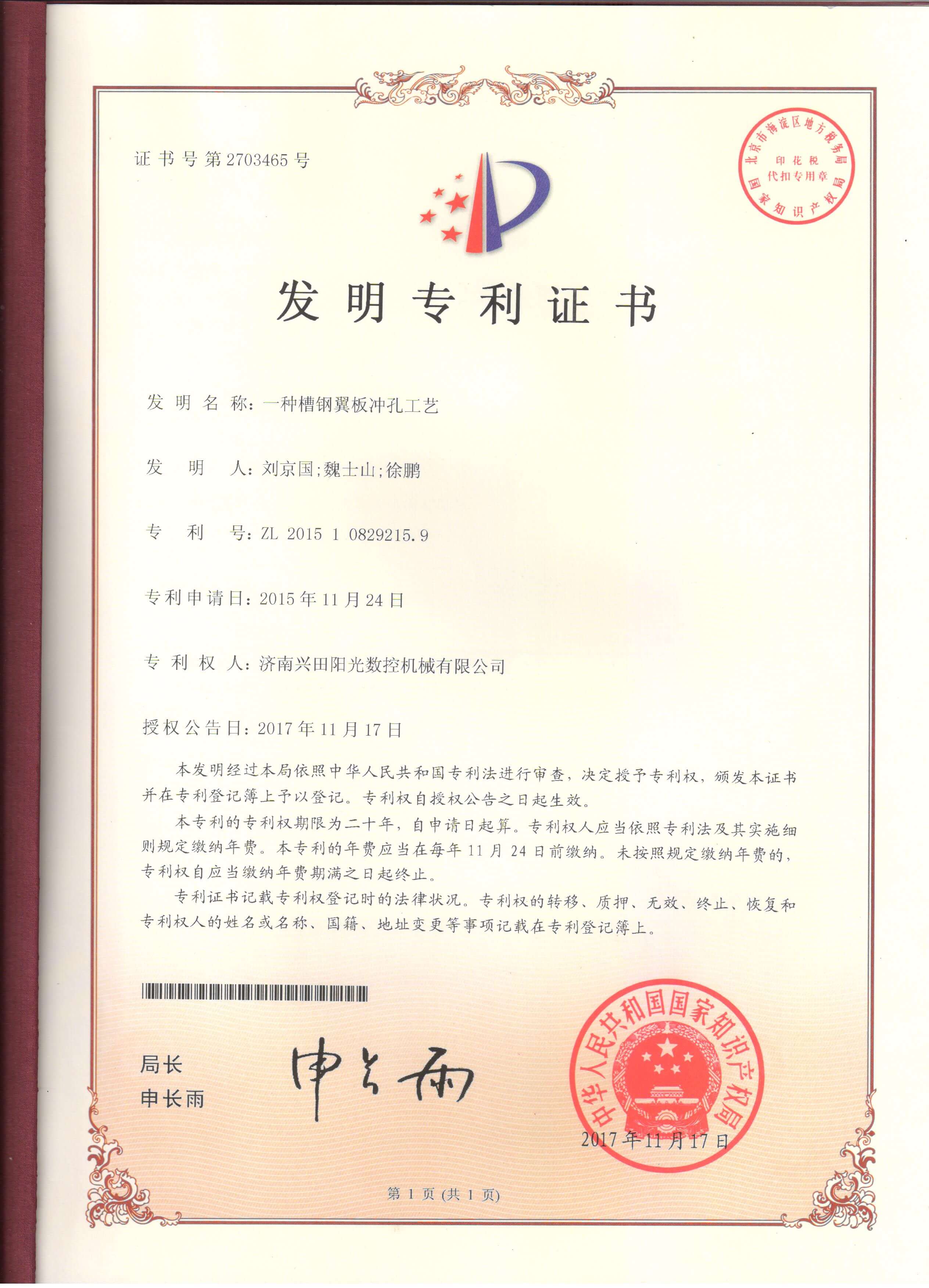 • 專(zhuān)利證書(shū)