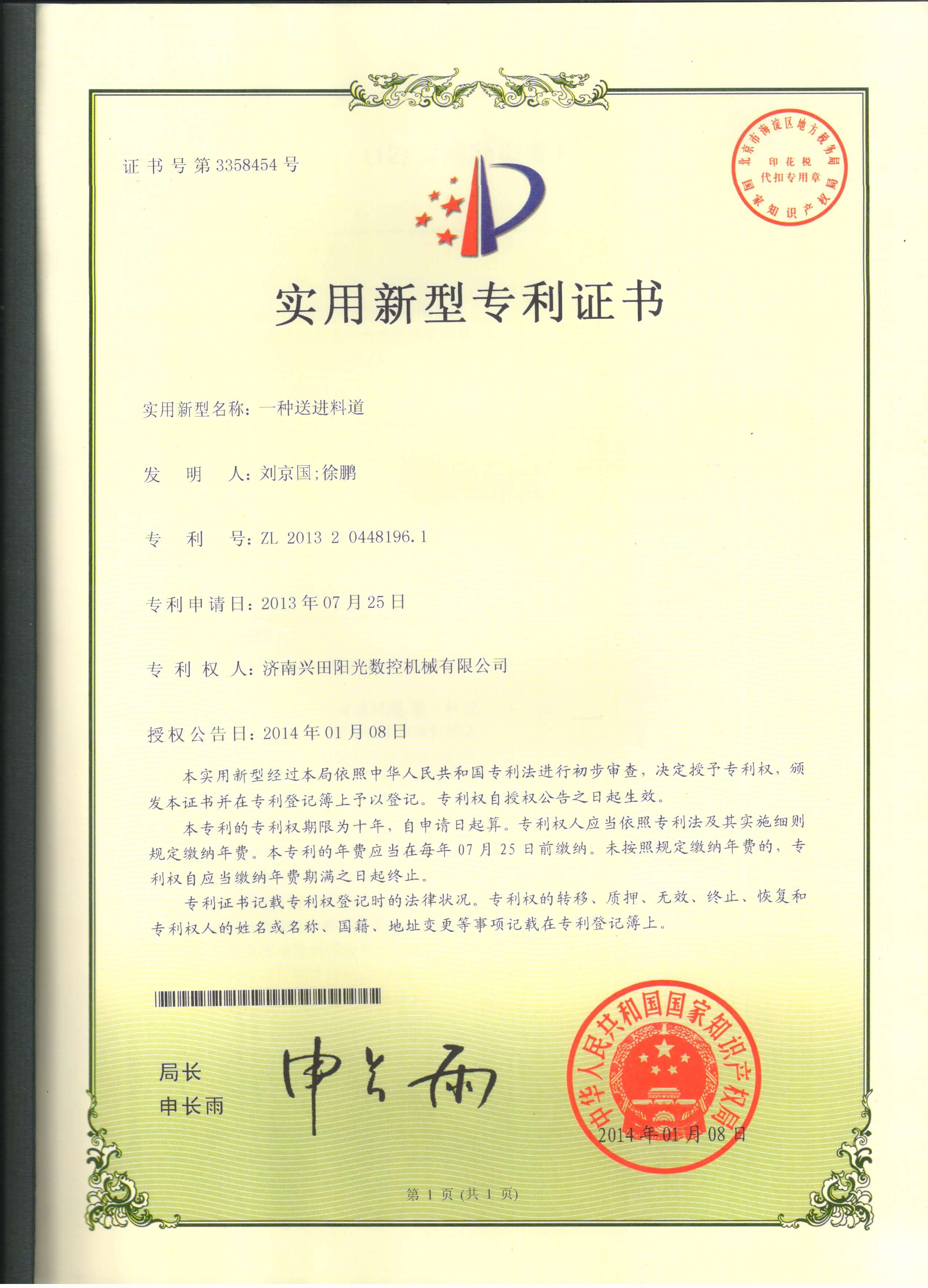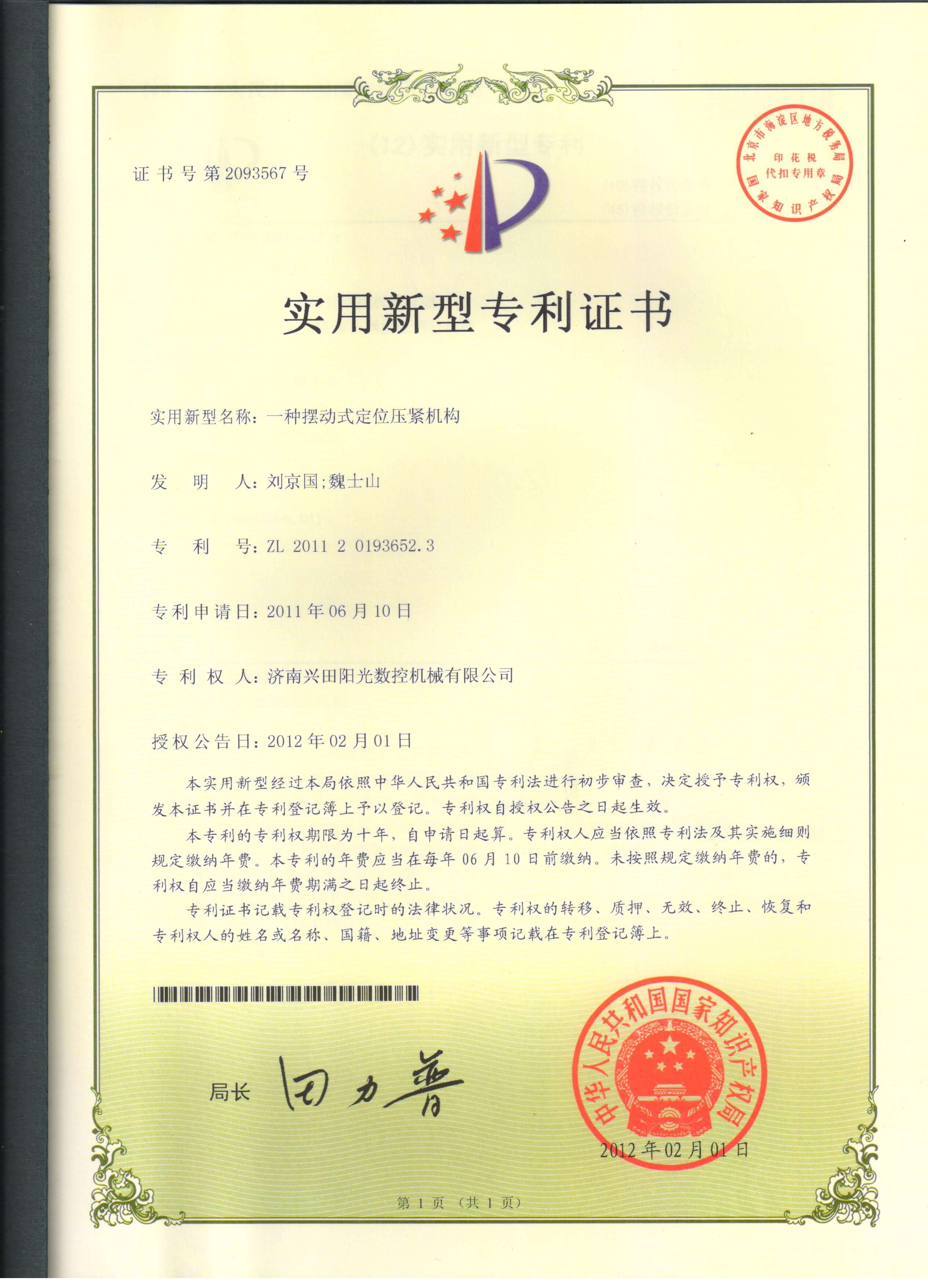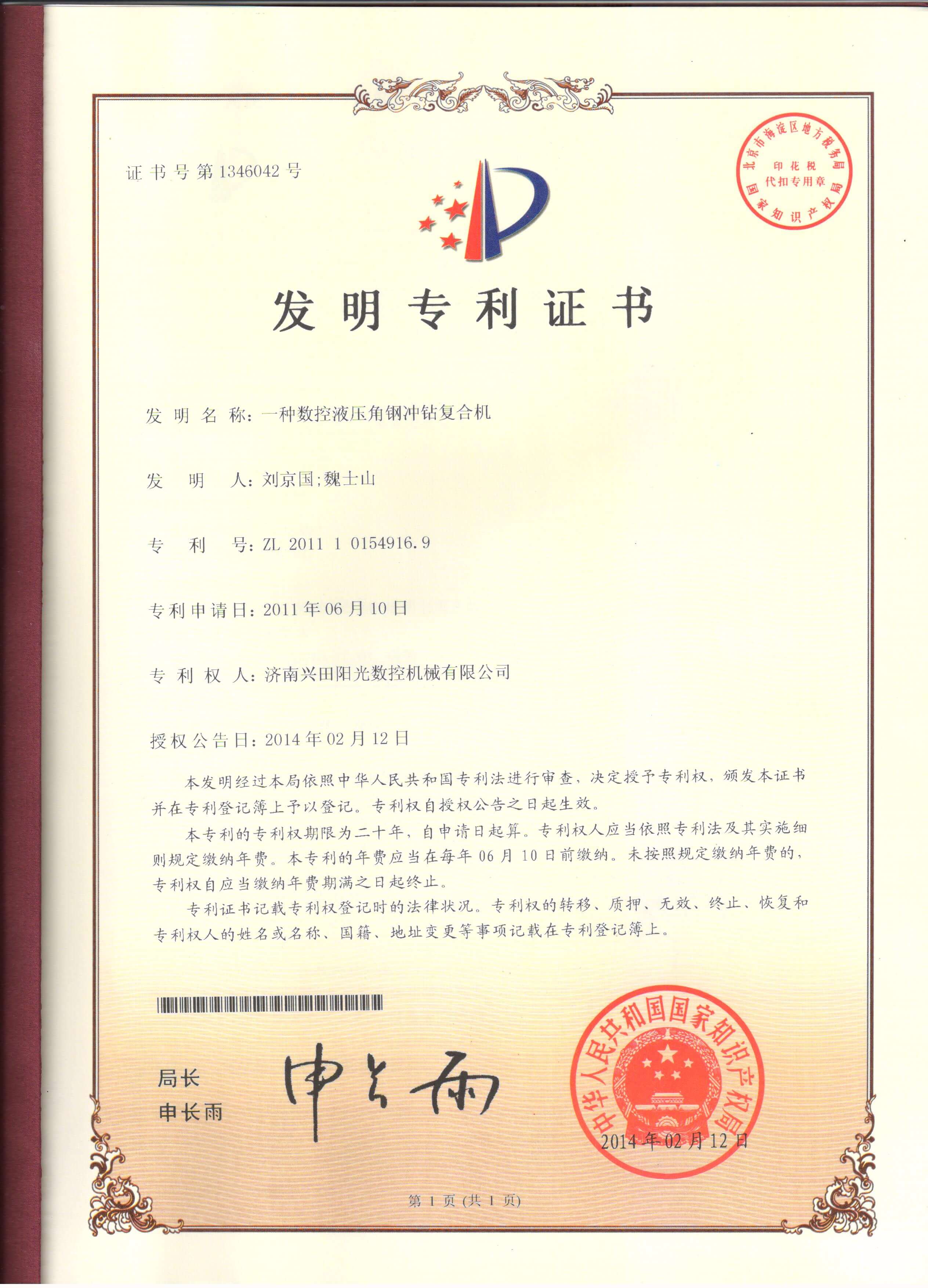 • 專(zhuān)利證書(shū)